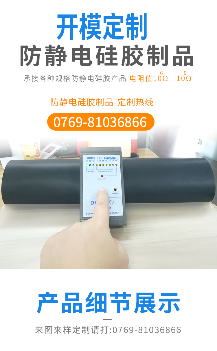 | 產(chǎn)品名稱 | 防靜電硅膠片材提供來圖來樣模壓定制 |